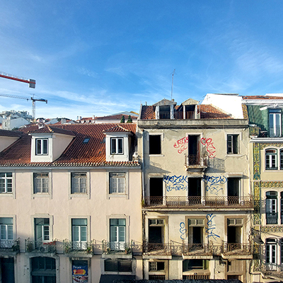 Three nights and three very sunny December days in the lovely As Janelas Verdes Hotel in beautiful Lisbon where unlimited port was provided and caused several hangovers. The rear of the hotel had views over the Tagus but this was the view directly over the street which housed several fabulous bars and eateries. Nothing happened in the derelict building during those three days, so someone is either very rich or very poor.