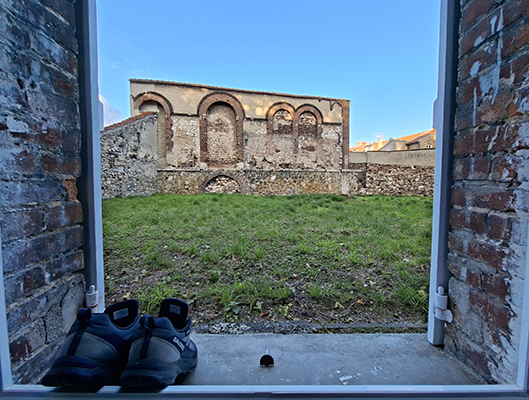 Back in 2014, the boys and I drove to the Champagne region of France to watch le Tour. From our Epernay base we got see see the finish of stage 6 at Epernay and the start of stage 7 at nearby Reims. This latest trip was a long-intended re-creation of that. There was a lot more time to explore Epernay on this latest visit - which looks completely different when not besieged by crowds, barriers and advertising hoardings - and it yielded a chance to visit one of the incredibly fascinating champagne houses with a guided tour. And tastings. The single-level apartment at Quai de la Villa was perfectly located; I assumed that this old ruin behind was once a castle, but research revealed nothing, and a walk to the other side showed a residents car park...